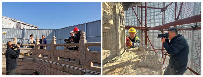 2023年12月8日,趙州陀羅尼經(jīng)幢保護(hù)工程施工現(xiàn)場,我公司技術(shù)人員攻堅(jiān)克難、不畏嚴(yán)寒,依然奮斗在施工崗位。在新搭設(shè)的腳手架上,他們牢記文物保護(hù)方針,采用科學(xué)、合理的技術(shù)手段對石質(zhì)文物表層結(jié)殼、結(jié)膜污染進(jìn)行清理,并依照方案核對塔身各類殘損病害,為后期的修繕工作做足準(zhǔn)備。